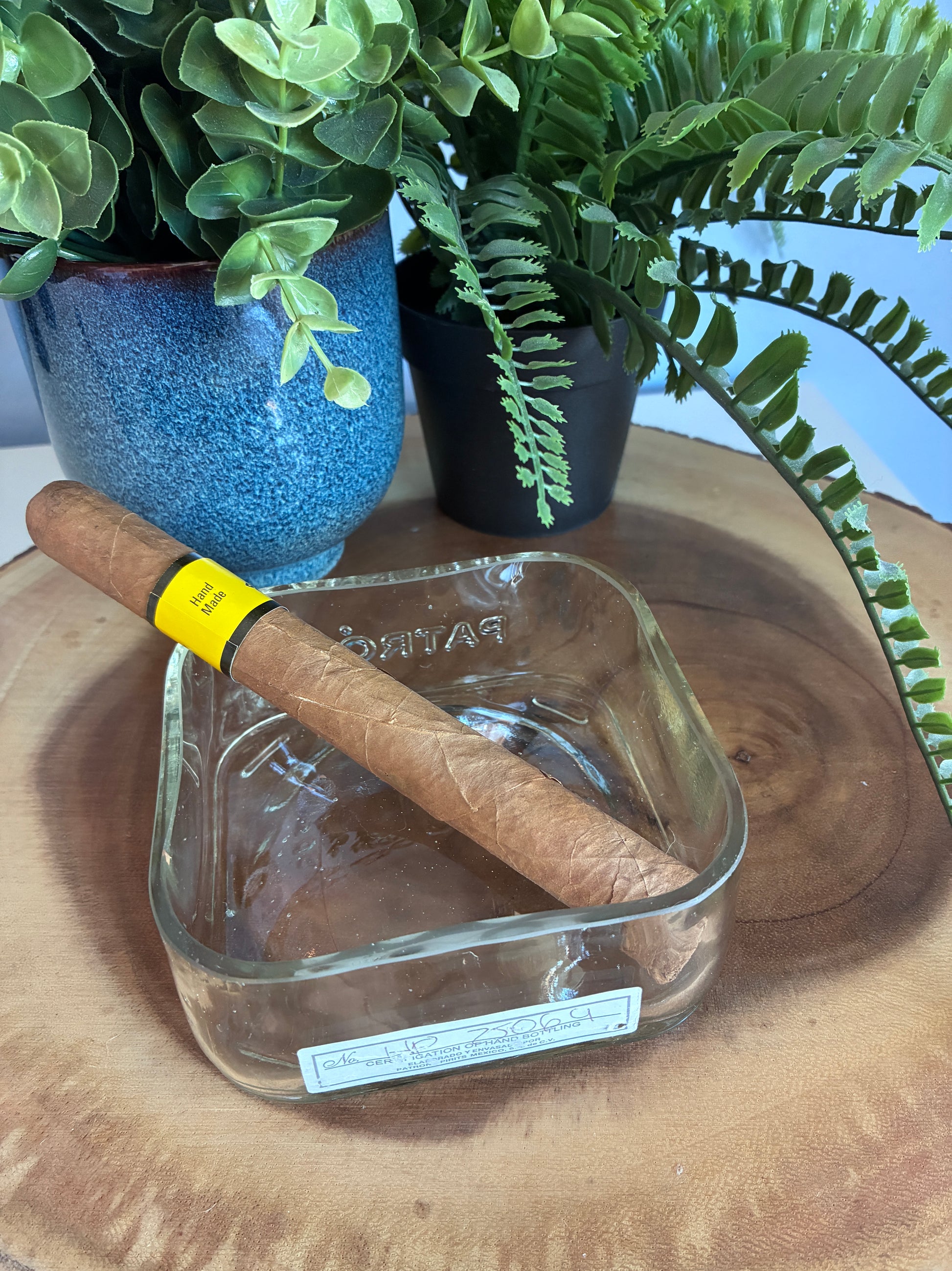 Patron dish created from bottom of discarded Patron tequila bottle. Liquor bottle cut, sanded and polished to a smooth finish. Can be used as a candy dish, keys and coin container, etc. Hand wash only.