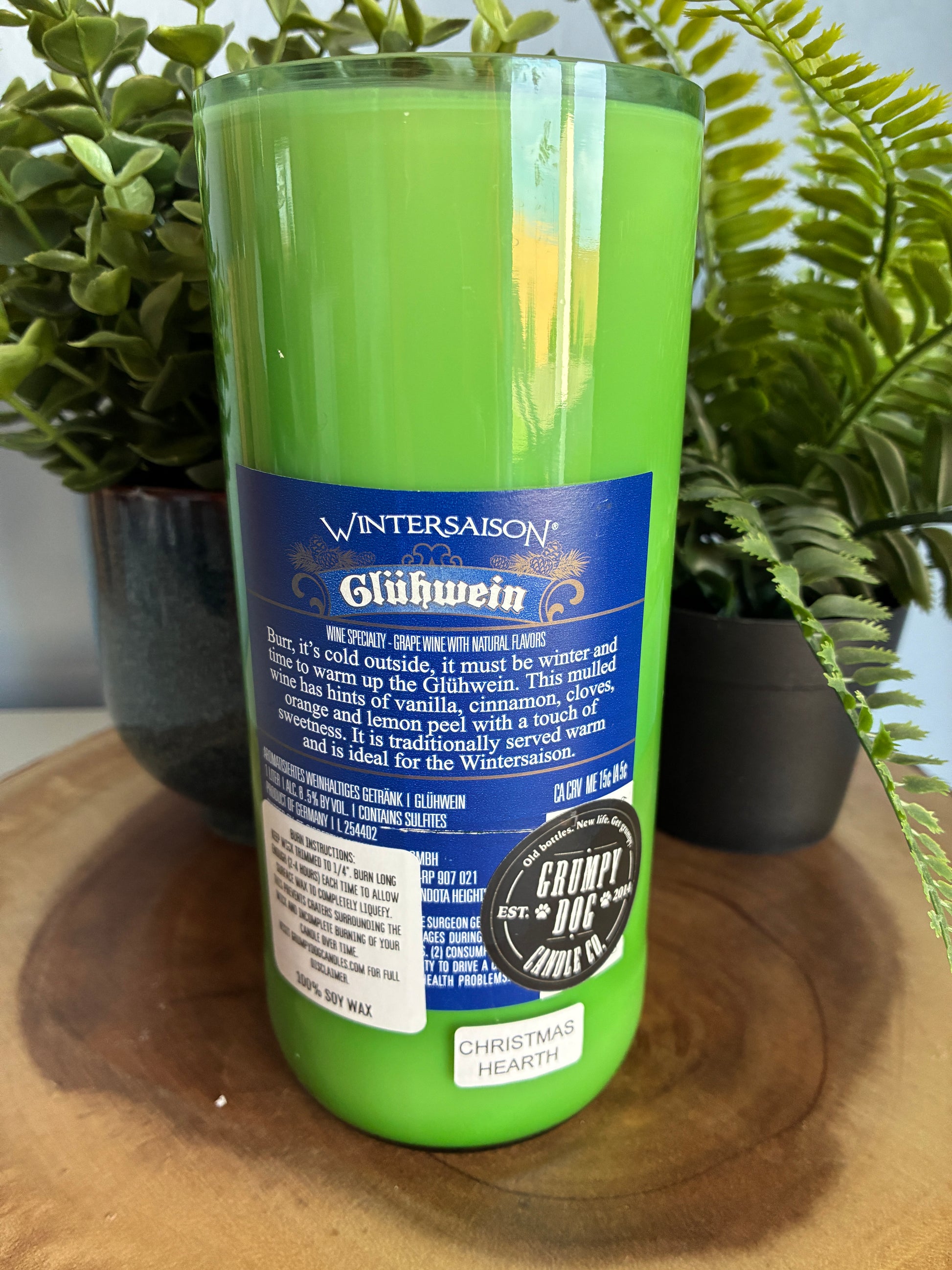 WinterSaison Glüwein German Mulled Wine candle created from discarded (750ml size) bottle. 100% soy wax, 1 wick.
